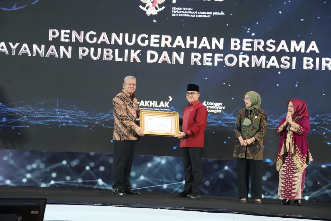 Penghargaan tersebut diterima langsung oleh Sekretaris Daerah Provinsi Kalbar, dr. Harisson, M.Kes., yang diserahkan langsung oleh Menteri Pemberdayaan Aparatur Negara dan Reformasi Birokrasi Republik Indonesia (MenPAN RB) H. Abdullah Azwar Anas, S.Pd., SS, M.Si. dalam acara Penganugerahan bersama Pelayanan publik dan birokrasi reformasi Tahun 2022 yang berlangsung di Hotel Bidakara Grand Pancoran Jakarta, Selasa (6/12).