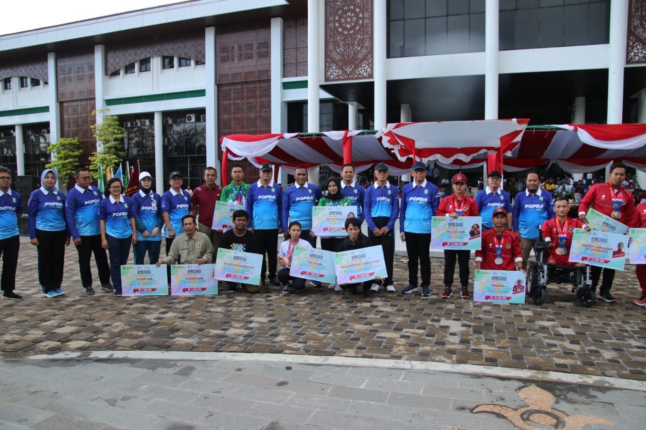 Masih dalam rangkaian Pembukaan POPDA Kalbar, Gubernur bersama Sekda dan Forkopimda Kalbar menyerahkan Penghargaan Apresiasi kepada para atlet asal Kalbar yang telah berhasil menjuarai ajang nasional.(rfk/wnd)