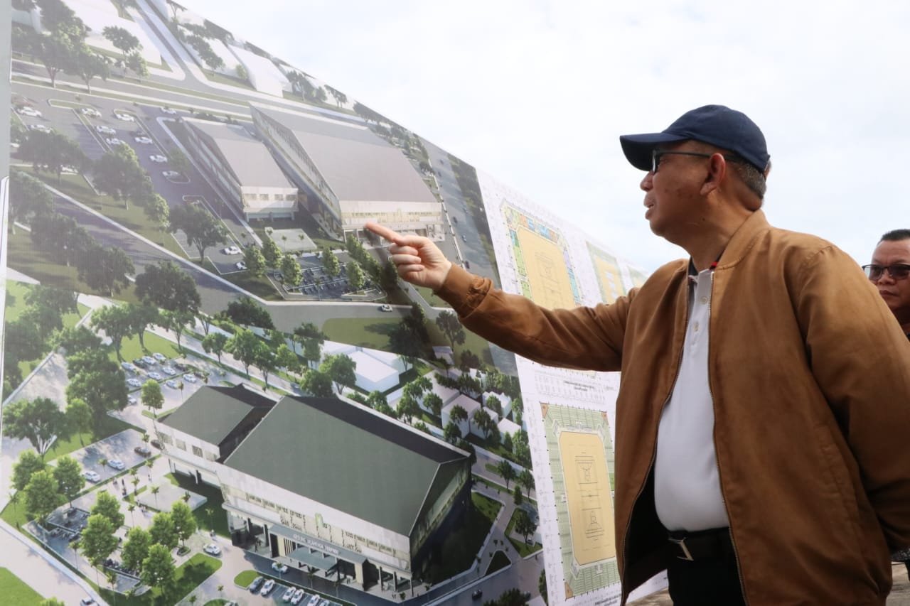 Gubernur Kalimantan Barat (Kalbar) H. Sutarmidji S.H., M.Hum., melakukan Pemancangan Tiang Pertama dimulainya Pembangunan Gedung Olahraga Terpadu, di Kawasan Stadion Sultan Syarif Abdurrahman, Sabtu (8/7). Gedung yang dibangun diatas lahan 21.239 meter persegi akan menampung lebih dari 4.000 orang.