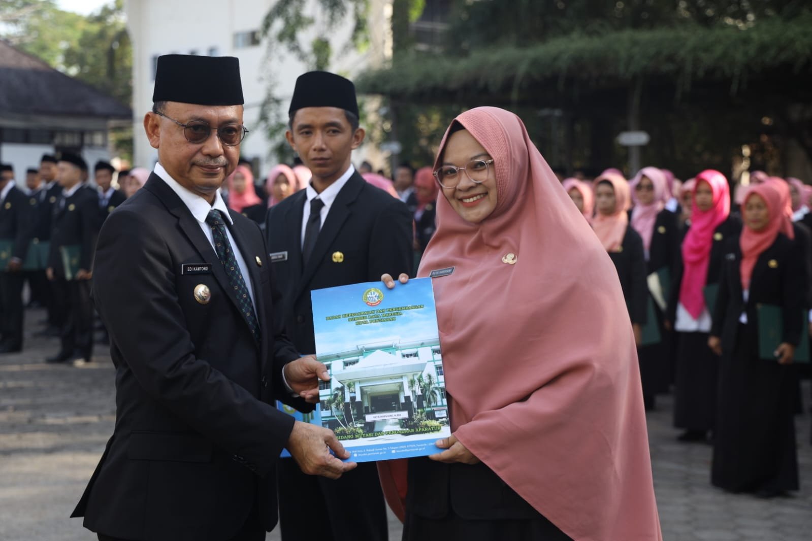 Pontianak– Sebanyak 465 Pejabat Fungsional yang terdiri dari Pegawai Pemerintah dengan Perjanjian Kerja (P3K) dan Pegawai Negeri Sipil (PNS) resmi dilantik Wali Kota Pontianak Edi Rusdi Kamtono di Halaman Kantor Wali Kota, Senin (24/7). Dari jumlah keseluruhan tersebut, 455 di antaranya merupakan tenaga P3K hasil perekrutan tahun 2022, yang terdiri dari 436 P3K guru dan 19 P3K teknis.