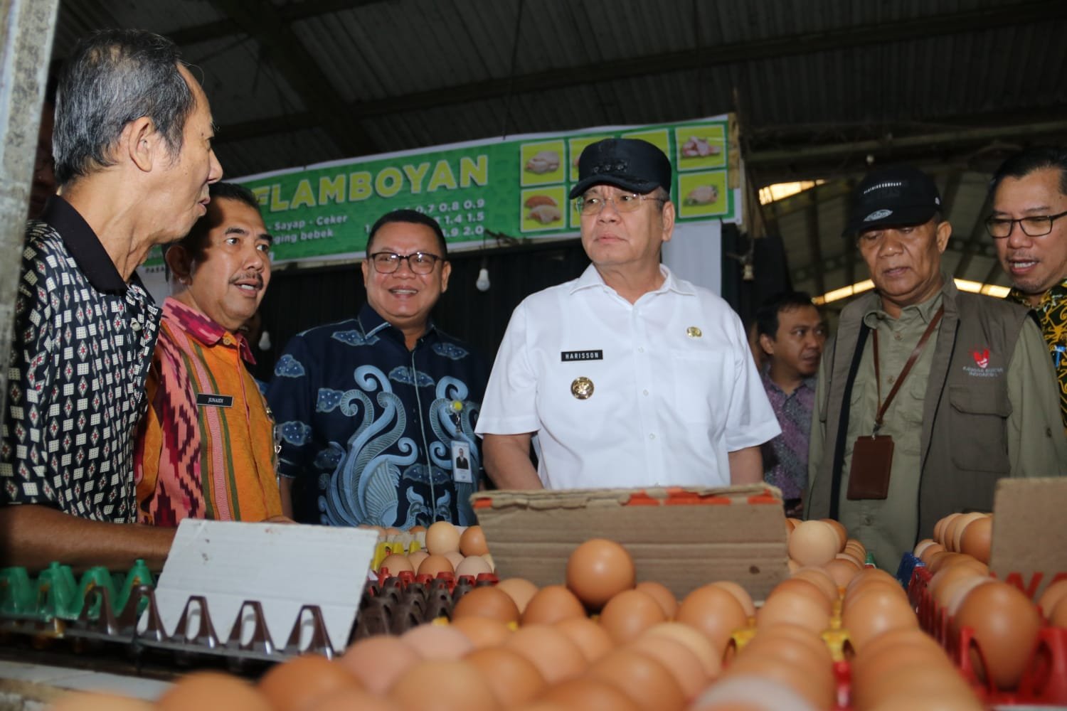 Dalam tinjau langsung pasar itu, Harisson didampingi beberapa Kepala Perangkat Daerah Kalbar terkait, Pemimpin Wilayah Bulog Kalbar dan Direktur Utama Bank Kalbar serta Kepala Dinas Koperasi Usaha Mikro dan Perdagangan Kota Pontianak, Junaidi,