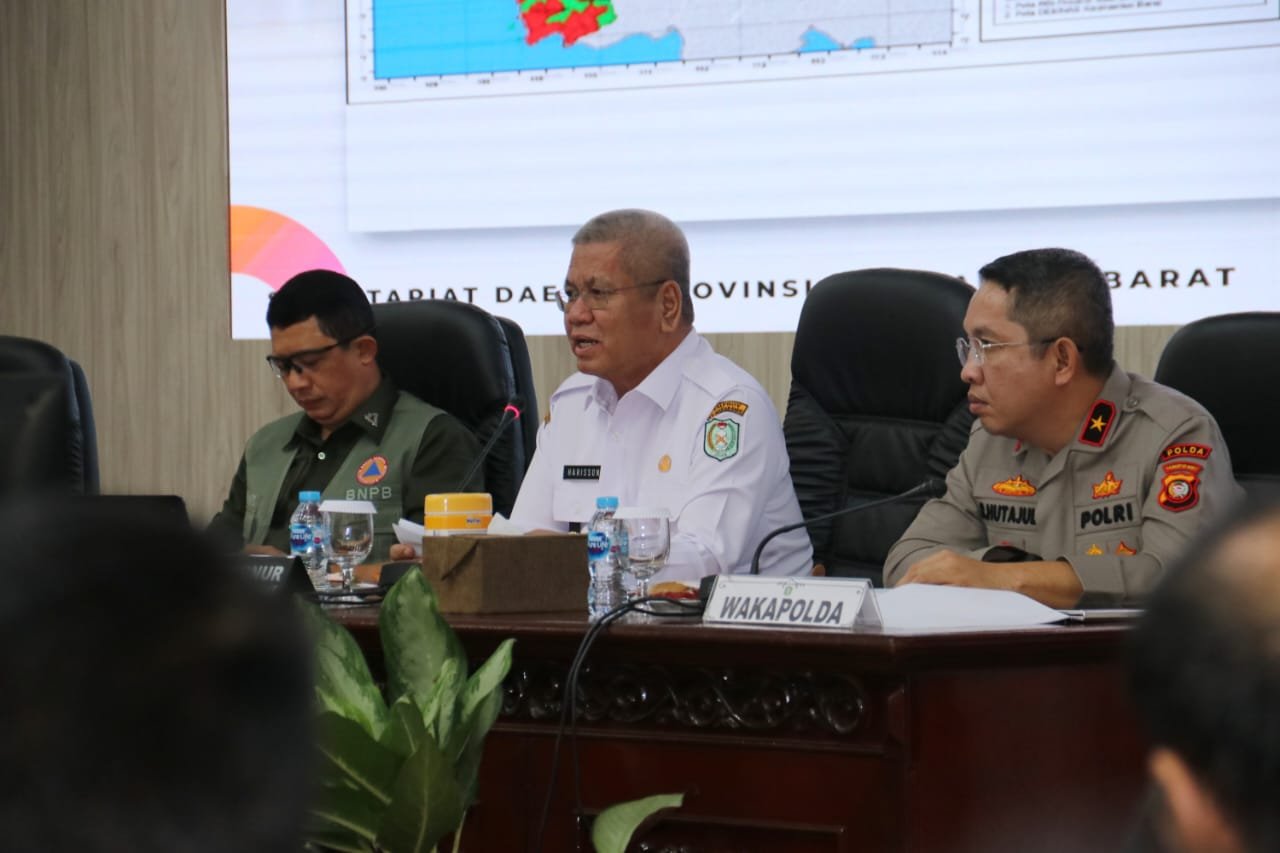 Dalam rangka Penanganan Darurat Bencana Asap Akibat Karhutla, Penjabat (Pj) Gubernur Kalimantan Barat, dr. Harisson, M.Kes., bersama Kepala Badan Nasional Penanggulangan Bencana Republik Indonesia (BNPB RI), Letjen TNI Suharyanto, S.Sos., M.M., menyelenggarakan Rapat Koordinasi di Kantor Gubernur, Rabu (20/9).
