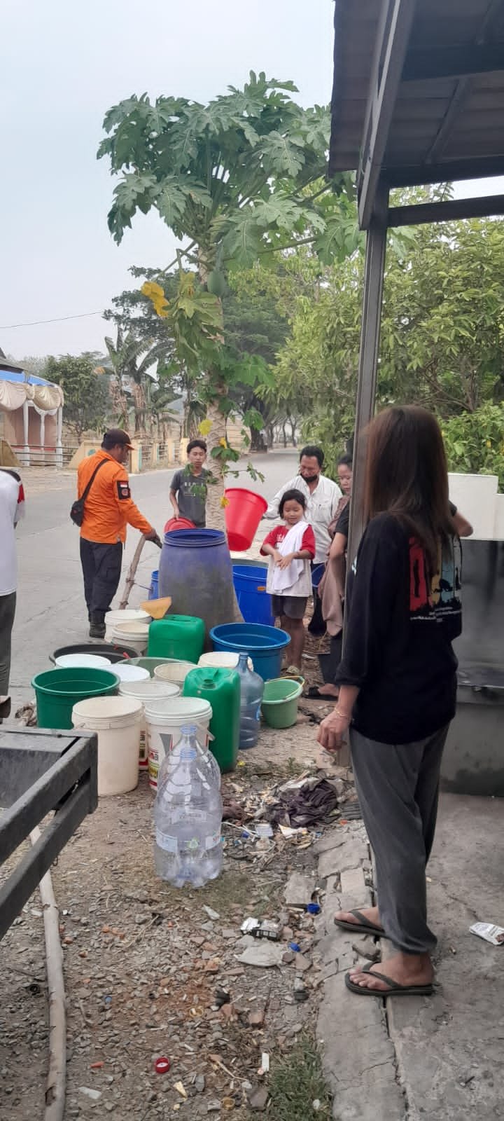 Menyikapi kondisi ini, Badan Penanggulangan Bencana Daerah (BPBD) Kabupaten Karawang bersama pihak terkai lain mendistribusikan air bersih ke wilayah terdampak. Sebanyak 4 titik pendistribusian air dengan total 20.000 liter. Hal ini dilakukan dengan 4 mobil tangki air dengan kapasitas 5.000 liter.