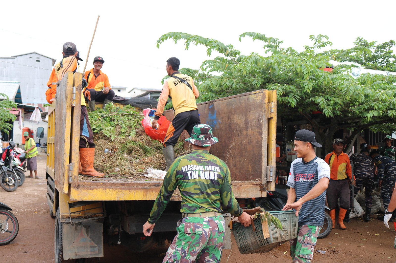 Ketapang- Kodim 1203/Ketapang bersama Polres Ketapang, Dinas Perumahan Rakyat dan Kawasan Permukiman dan Lingkungan Hidup (Perkim-LH) Kabupaten Ketapang membersihkan Pasar Ratu Melati Ketapang pada Kamis (7/12).