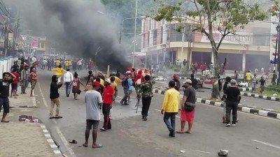 Papua- Massa iringan-iringan penjemput jenazah mantan gubernur Papua, Lukas Enembe di Jayapura berdampak rusuh dan kerusakkan yang membuat miris semua pihak. Aksi massa diduga diprovokasi OPM.