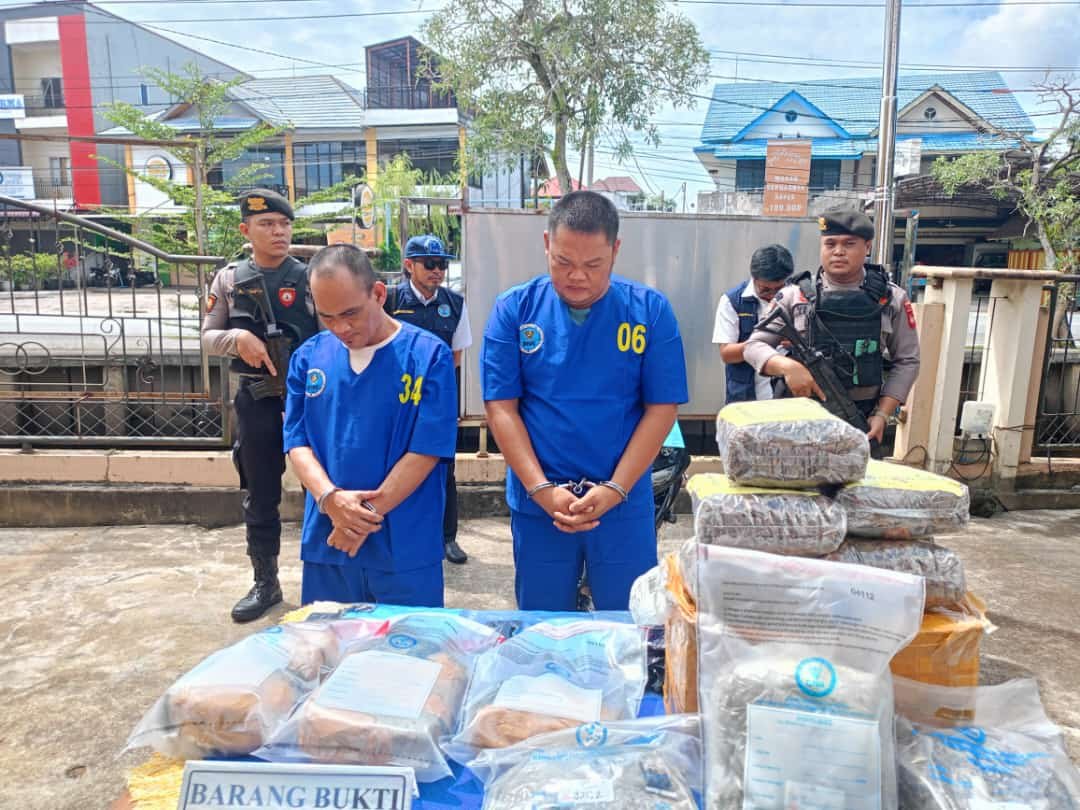 Beranda Kalimantan Barat 6 Kg Ganja Asal Aceh dan Sumatera Utara Dimusnahkan Kalimantan Barat 6 Kg Ganja Asal Aceh dan Sumatera Utara DimusnahkanTim EditorRabu 3 April 2024 Kedua tersangka berikut barang bukti ganja kering (foto:noe) Berikutnya Laman: 1 2 KomentarBaca JugaPrakiraan Cuaca Kalimantan Barat Hari Ini: BMKG Peringatkan Potensi Hujan dan Angin KencangPrakiraan Cuaca Kalimantan Barat 9 Maret 2026: Waspada Angin Kencang di Sejumlah Wilayah Sore hingga MalamPrakiraan Cuaca Kalimantan Barat 8 Maret 2026: Waspada Hujan dengan Intensitas Sedang Disertai Angin KencangPemerintah Pusat Tambah Kuota Rumah Rakyat Kalbar, Warga Bisa Nikmati Hunian Layak?Mengenal Ikan Tapah, Raksasa Sungai Kalimantan Bernilai Puluhan JutaPrakiraan Cuaca Kalimantan Barat Jumat 6 Maret Diwarnai Angin Kencang