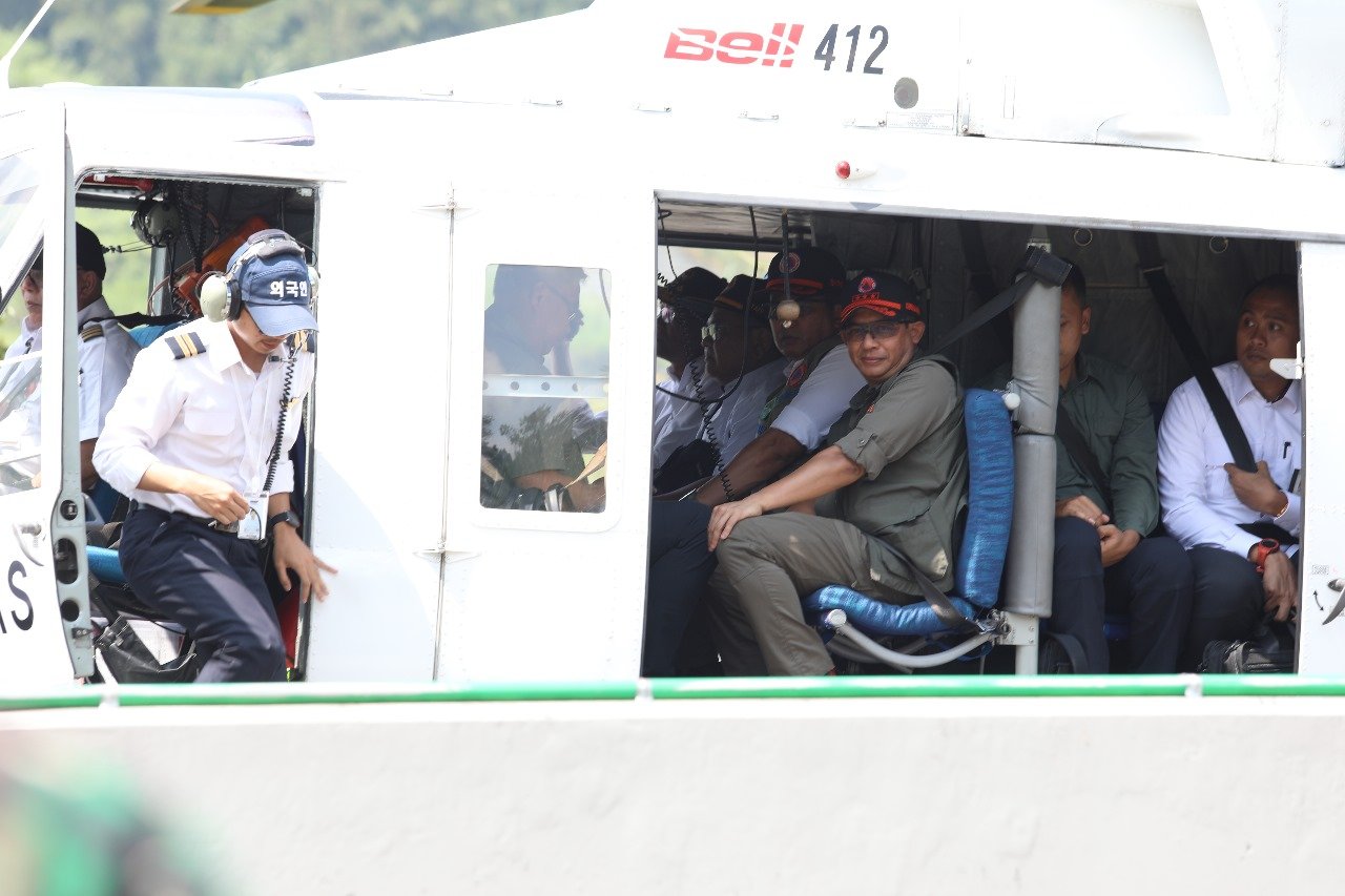 Pada kegiatan yang dipimpin oleh Menko PMK kali ini, rombongan berangkat dengan menggunakan Helikopter BNPB model Bell 412 yang “take off” dari bandara Halim Perdana Kusuma pada pukul 10.00 WIB. Selanjutnya rombongan tiba di titik lokasi peninjauan pertama di ruas tol Bocimi.