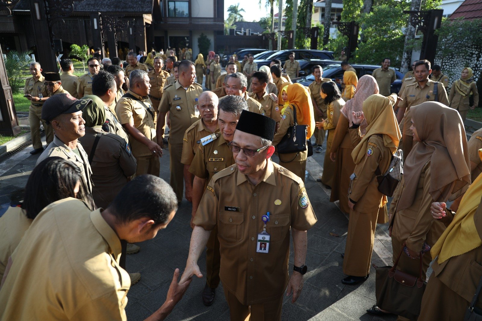 “Capaian tertinggi seorang ASN bukanlah posisi Sekda, melainkan dapat pensiun sampai akhir. Itu menurut pandangan kacamata saya, kebetulan saya berkacamata,” kelakarnyai, usai bersalam-salaman, Selasa (30/4).