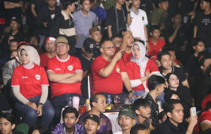 PONTIANAK – Gelaran Nonton Bareng (Nobar) oleh Pemprov Kalbar di halaman Kantor Gubernur,Jalan Ahmd Yani,Selasa (29/4) membludak, ribuan warga Kalbar memenuhi halaman.Hiruk pikul dan yel-yel riuh terdengar.