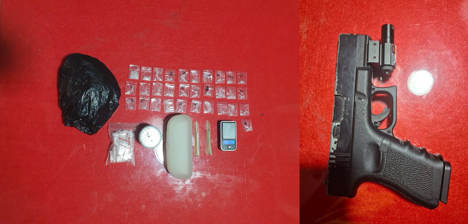 “Dari informasi yang kami terima, kita lakukan upaya hukum melalui penggeledahan di 5 lokasi rumah tersebut sekira pukul 10.30 WIB dan dari beberapa lokasi rumah tersebut, didapati beberapa terduga pelaku sudah kabur dan beberapa lainnya tidak ditemukan barang bukti. Namun saat menggeledah sebuah rumah milik terduga pelaku berinisial J yang merupakan target operasi, kami dapati terduga pelaku J sedang tidak berada dirumah. Hanya ada istri terduga pelaku yaitu T. Disaksikan perangkat desa setempat, T sempat mencoba membuang sebuah wadah minyak rambut ke arah belakang rumah dan ternyata didalam wadah minyak rambut tersebut terdapat 31 paket klip plastik yang berisi serbuk kristal yang diduga sabu,” jelas AKP Aris.