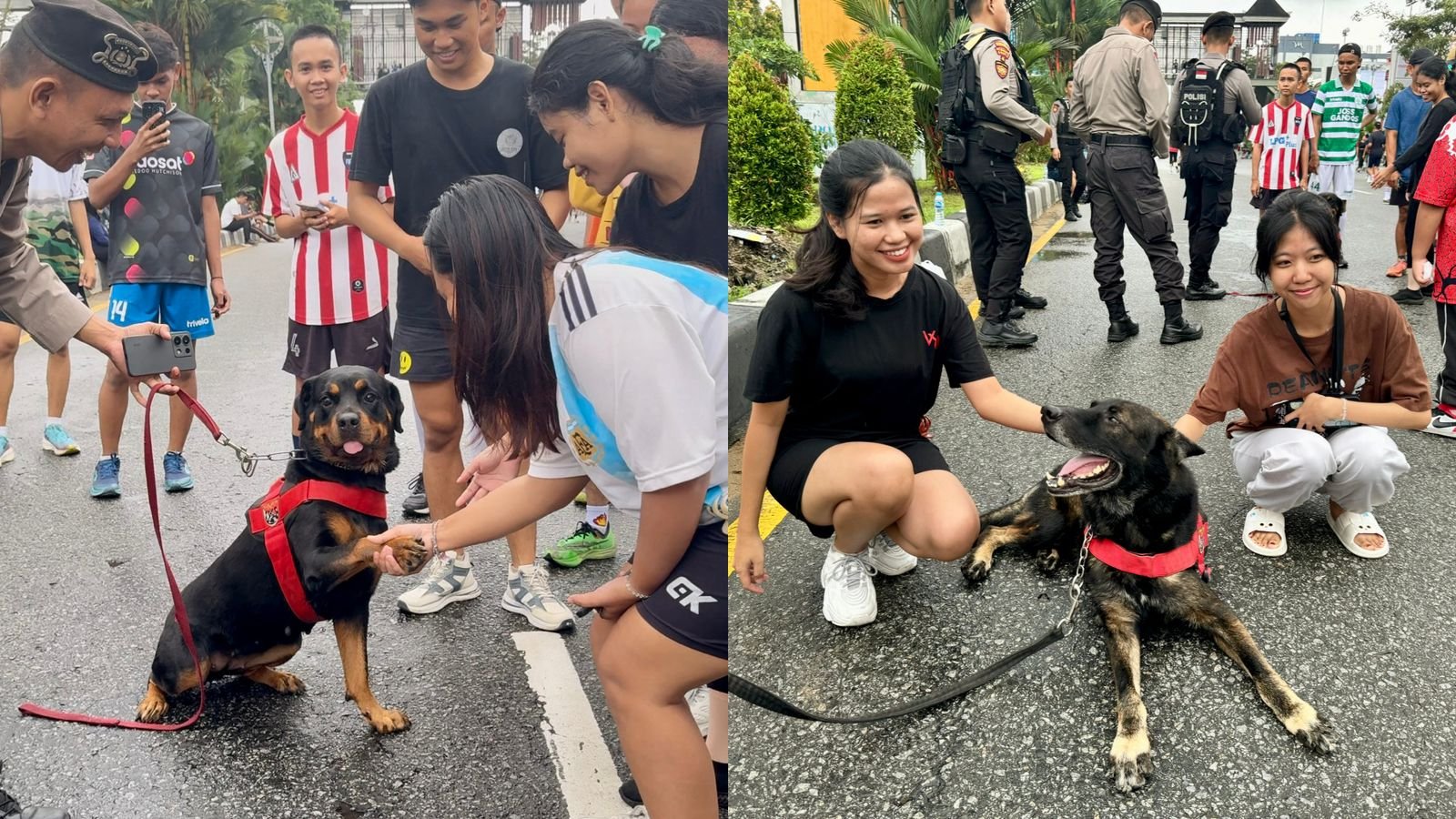 Kedua anjing ini tidak hanya bertugas untuk pengamanan, tetapi juga menarik perhatian para pengunjung karena sifat ramah mereka. Baik orang dewasa maupun anak-anak bersemangat untuk berfoto bersama mereka.