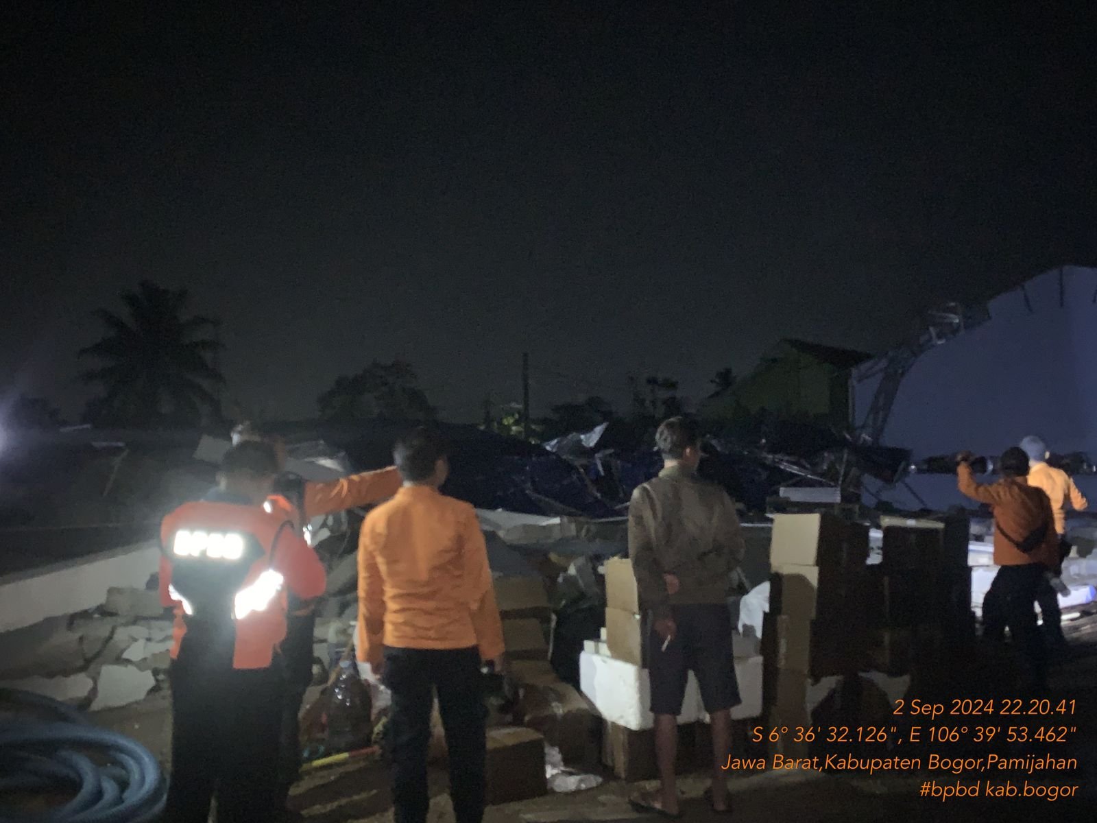 BOGOR – Kabupaten Bogor, Provinsi Jawa Barat, dilanda angin kencang disertai hujan deras pada Senin (2/9) sore. Insiden ini menyebabkan ambruknya gudang peralatan untuk kolam budidaya ikan hias di Desa Cimayang, Kecamatan Pamijahan, sekitar pukul 17.30 WIB. Bencana ini mengakibatkan dua orang meninggal dunia dan empat orang luka-luka.
