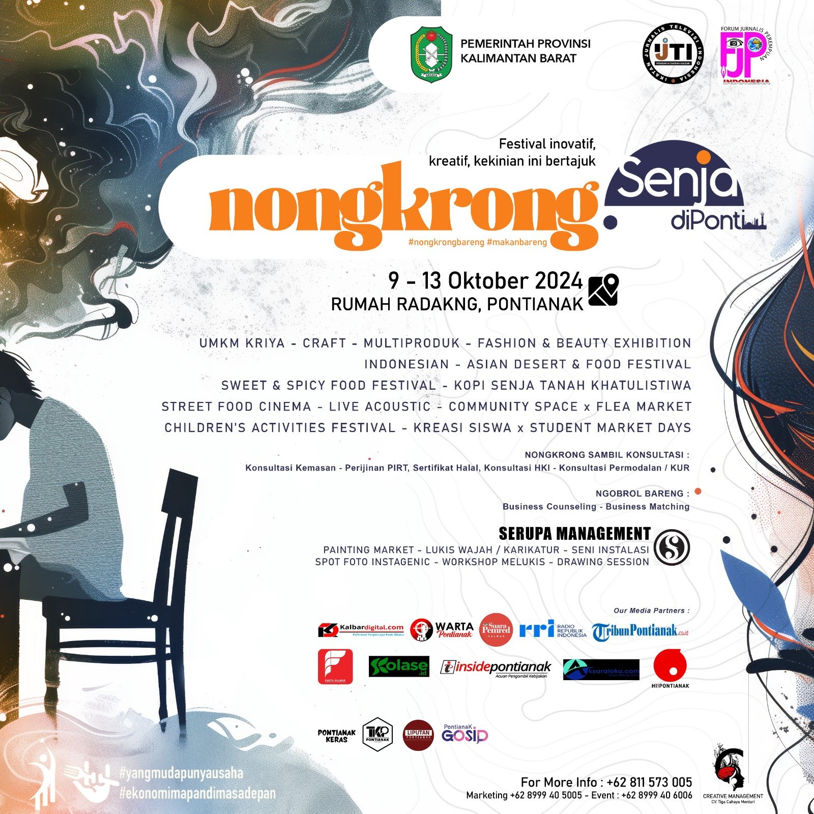 Selain beragam konten, dalam kegiatan ini juga melibatkan pelaku seni Kalimantan Barat, yaitu Serupa Management, dengan kegiatan berupa: Painting Market, Lukis Wajah/ Karikatur, Art Space – Seni Instalasi, Workshop Melukis, Drawing Session, dan Spot Foto Instagenic.