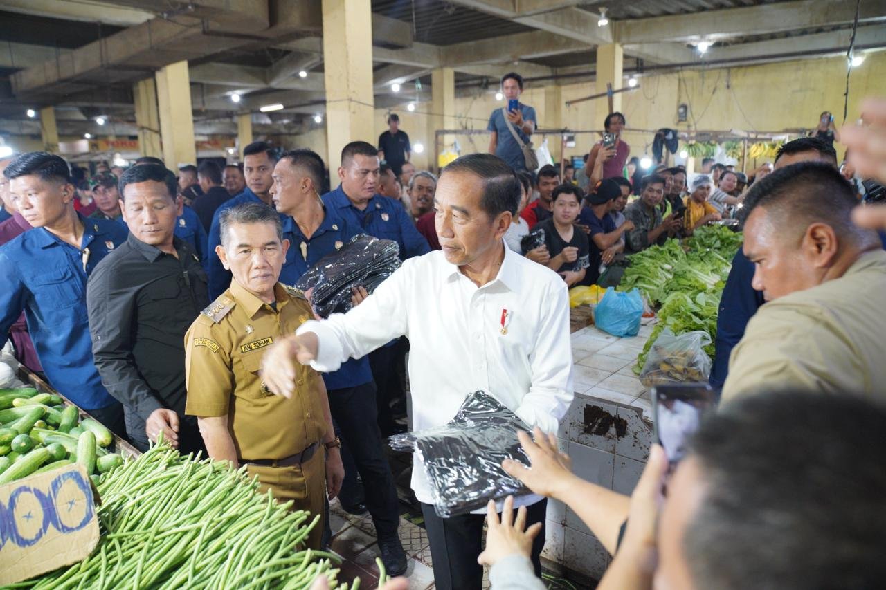 Presiden Jokowi menyebut harga komoditas pangan di Pasar Mawar terbilang baik. Bahkan harga sejumlah komoditas ada yang mengalami penurunan.