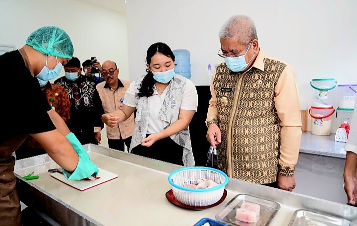 SINTANG – Gubernur Kalimantan Barat, dr. Harisson, M.Kes. dalam kunjungan kerjanya di Kabupaten Sintang berkesempatan meninjau PT. Semesta Sintang Lestari yang merupakan lokasi pembuatan albumin Borneo dan biskuit dengan omega 3,6,9, Kamis (14/11).