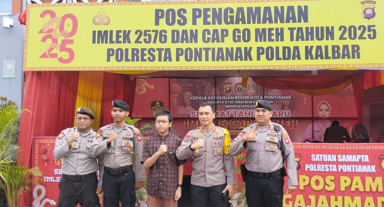 PONTIANAK – Masuki hari ketiga perayaan Imlek 2576, Kabidhumas Polda Kalbar, Kombes Pol Bayu Suseno melakukan pengecekan Pos Pengamanan Operasi Kepolisian Liong Kapuas 2025 di Jalan Diponegoro Pontianak, Jumat (31/1/2025).
