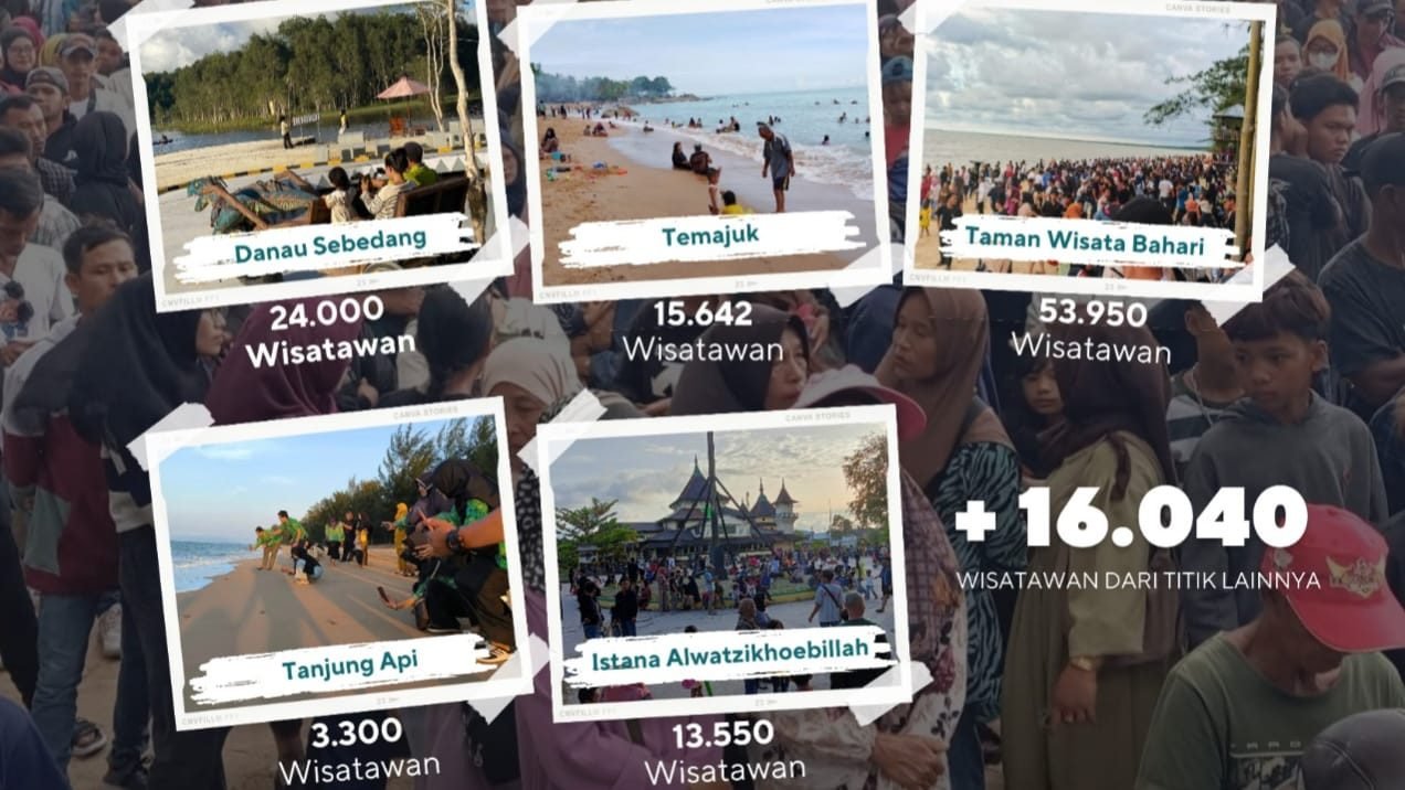 Berdasarkan data tersebut, lima destinasi unggulan di Sambas yang paling banyak menarik pengunjung selama libur lebaran adalah Taman Wisata Bahari dengan 53.950 kunjungan, Danau Sebedang 24.000 kunjungan, Temajuk 15.642 kunjungan, Istana Keraton Sambas 13.550 kunjungan, dan Tanjung Api dengan 3.300 kunjungan. Selain itu, terdapat juga 16.040 kunjungan yang tersebar di berbagai objek wisata lain di Kabupaten Sambas.