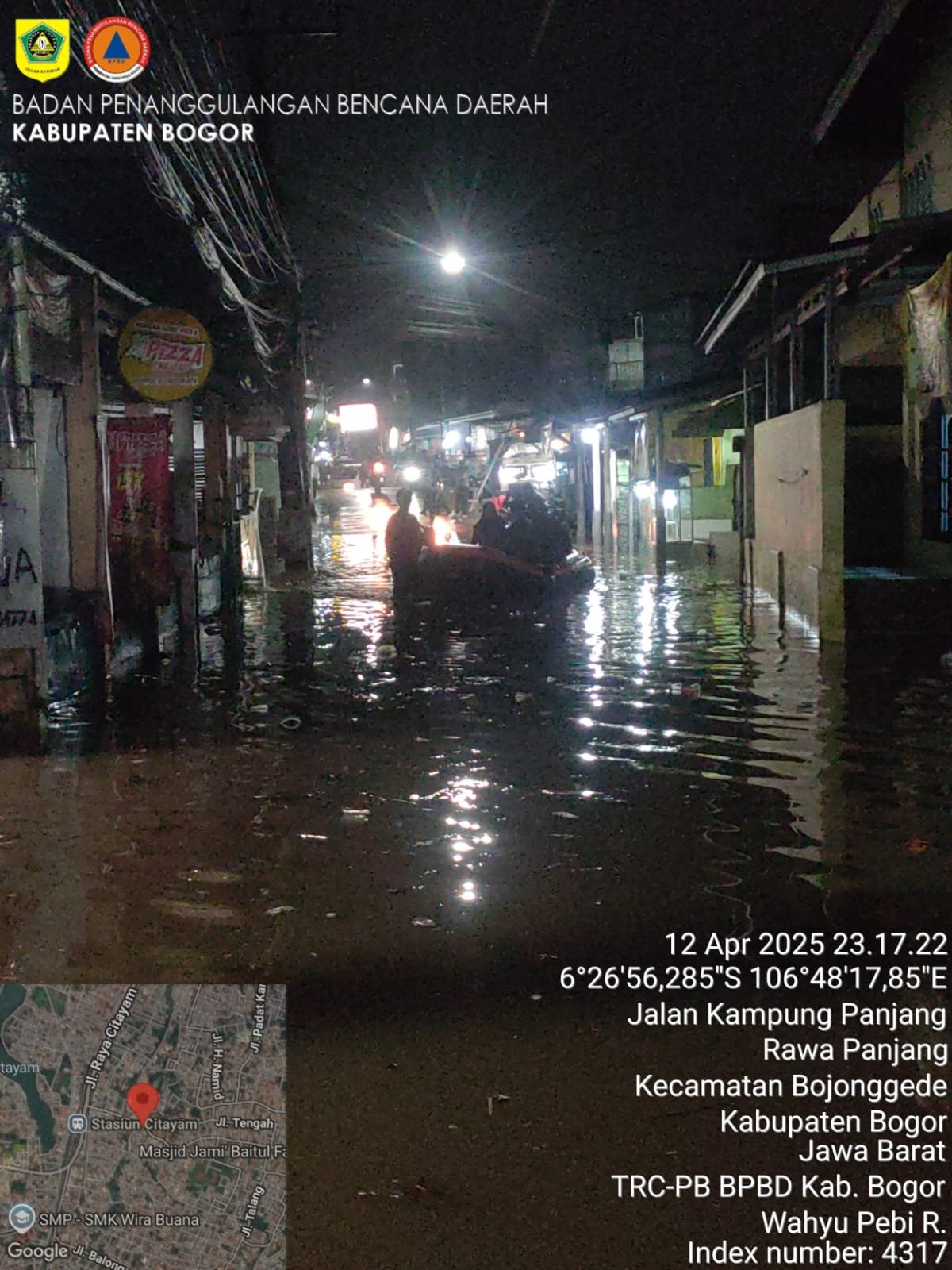 Fakta Kalbar id, JABAR – 670 jiwa terdampak banjir di Kabupaten Bogor, Provinsi Jawa Barat, pada Sabtu (12/4) pukul 21.25 WIB. Peristiwa ini dipicu hujan dengan intensitas tinggi yang berlangsung cukup lama sehingga menyebabkan aliran Kali Pelayangan meluap dan menyebabkan banjir.