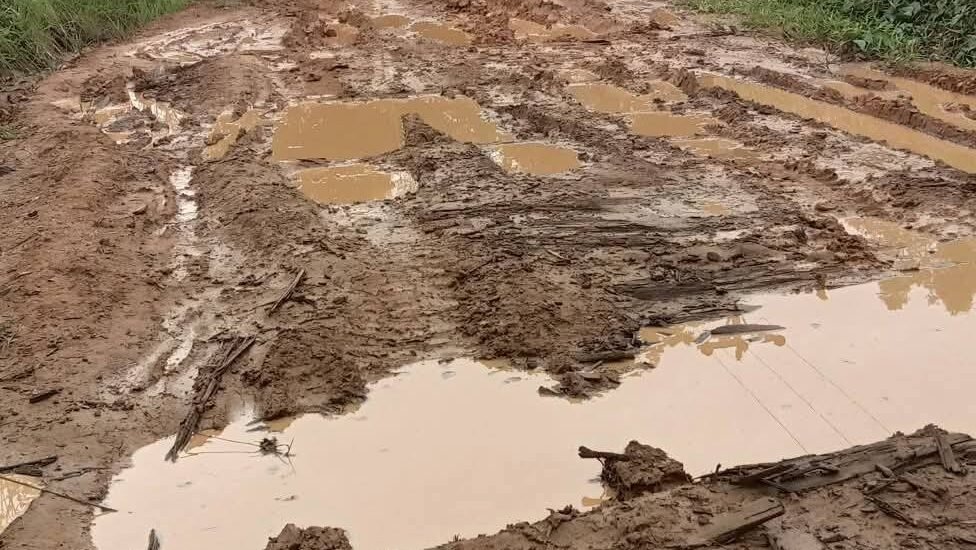 Jalan yang menjadi akses utama warga ini kini dipenuhi kubangan lumpur dan lubang besar, terutama saat musim hujan.