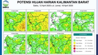FaktaKalbar.id, PONTIANAK – Badan Meteorologi, Klimatologi, dan Geofisika (BMKG) Kalimantan Barat memperkirakan bahwa wilayah Kalimantan Barat akan berpotensi hujan pada Sabtu (12/4). Wilayah-wilayah seperti, Bengkayang, Kapuas Hulu, Kayong Utara, Ketapang,…